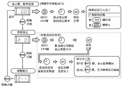 FR-S500系列变频器的基本操作有:监视器、频率设定、参数设定、报警履历,如图6. 6所示。