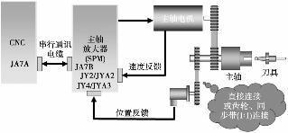 由CNC装置发出主轴准停信号,通过主轴放大器的JY2(α系列主轴模块)/ JYA2(αi系列主轴模块)进行主轴速度、位置及一转信号反馈。