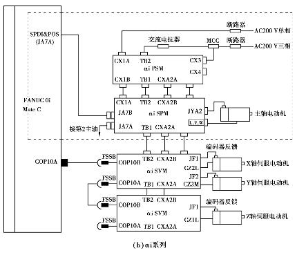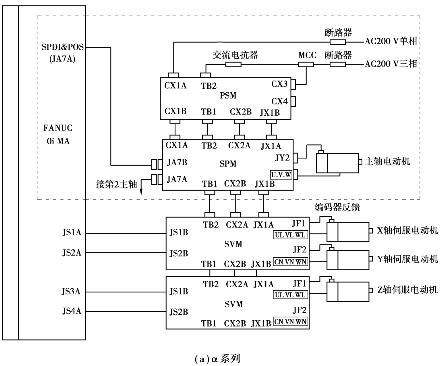 由CNC装置发出主轴准停信号,通过主轴放大器的JY2(α系列主轴模块)/ JYA2(αi系列主轴模块)进行主轴速度和位置控制,通过JY3(α系列主轴模块)/ JYA3(αi系列主轴模块)进行主轴一转信号反馈。