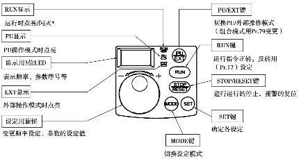 图6. 5为FR-S500系列变频器操作面板的示意图并给出各键的功能。
