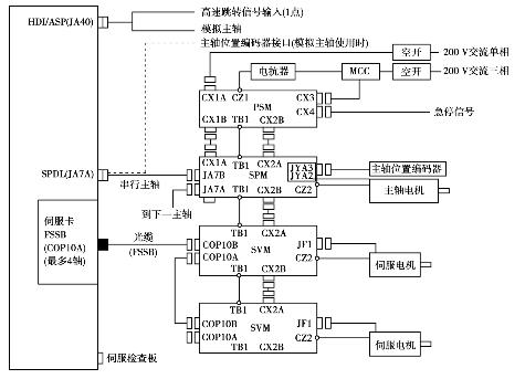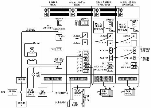 图7.11 FANUC αi系列伺服放大器各模块之间的连接示意