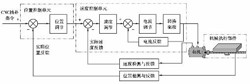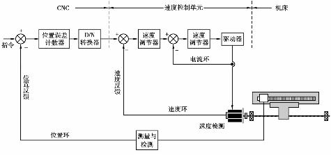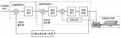 数控机床的伺服驱动系统按其功能和用途划分为主轴驱动系统和进给伺服系统。数控机床的进给伺服是一种位置随动系统,是数控装置和机床的联系环节。它的作用是快速、准确地执行由数控装置发出的控制命令,通过伺服驱动系统转换成坐标轴的运动,精确地控制机床进给传动链的坐标运动,完成程序所规定的操作。