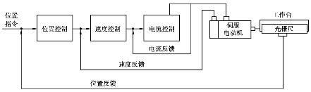 如图7. 9所示是数控机床的全闭环伺服系统,位置反馈信号取自最终运动部件,直接采样其直线位移信号进行检测。它将位置检测器件直接安装在机床工作台上,从而可以获取工作台实际位置的精确信息,通过反馈闭环实现高精度的位置控制。从理论上说,这是一种最理想的位置伺服控制方案。