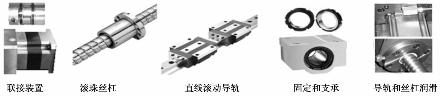 数控机床进给伺服系统的机械传动组件是将伺服电动机的旋转运动转变为工作台或刀架直线运动以实现进给运动的机械传动部件。主要包括伺服电动机与丝杠联接装置、滚珠丝杠螺母副及其固定支承部件、导向元件和润滑辅助装置等。它的传动质量直接关系到机床的加工性能。数控机床进给组件具体组成如图7. 6所示。