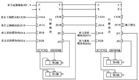 FANUC 0i C进给伺服驱动的进给伺服放大器为αi系列,进给伺服电动机使用αis系列,最多可接4个进给轴电动机。