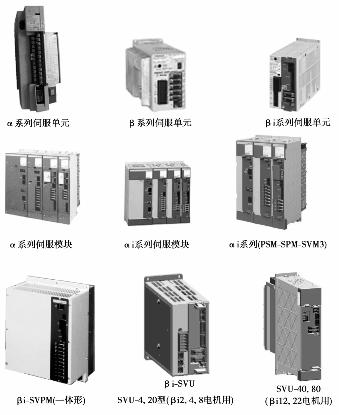 目前FANUC系统常用的伺服放大器有α系列伺服单元、β/βiS系列伺服单元、α/αi系列伺服模块和β/βis系列驱动单元,如图7. 2所示。