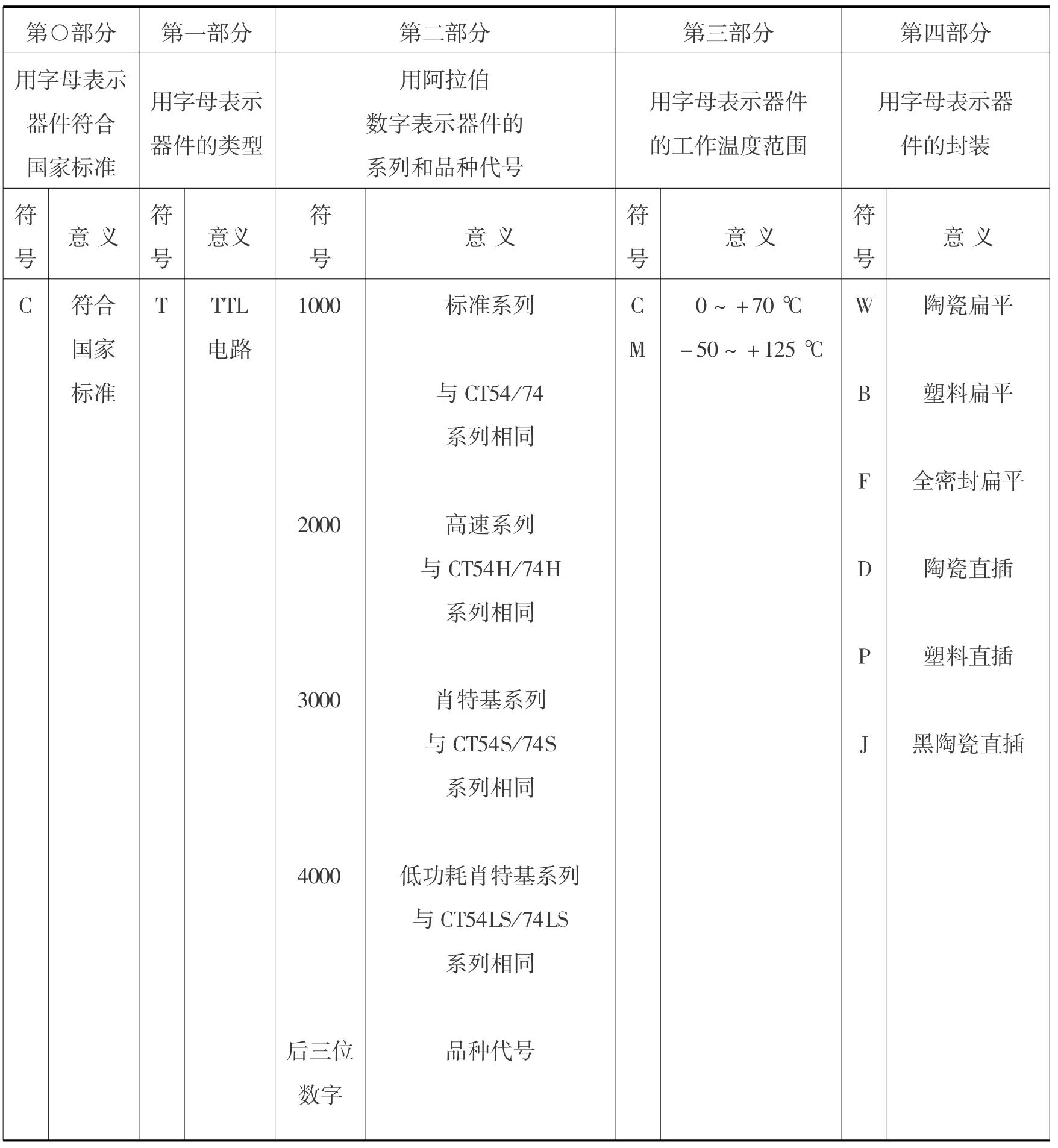 CT0000系列与54/74系列一致。CT0000系列TTL电路(以下简称器件)型号的各组成部分的符号及意义如下: