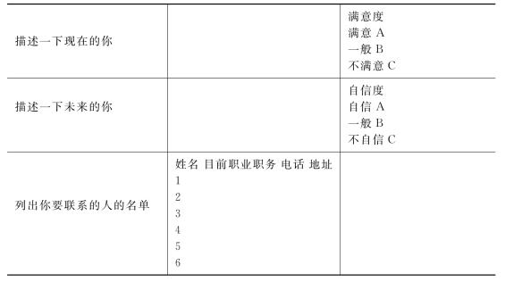 3.认真填写表1-3,并且保存起来,到既定日期对比一下为了实现这个目标,应该多联系什么样的人呢,一定要明确,越详细越好。