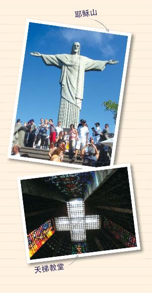 我们没碰上狂欢节,但看了“桑巴大道”,两侧巨大的看台,使我们想起在巴西买的“2009年狂欢节”DVD。3个多小时的DVD记录了“桑巴大道”表演盛况,华丽无比,激情奔放。每一个方阵都有一辆巨大的彩车,或是鳄鱼或大鸟模型,或是各式人物,叙说着千奇百怪的故事和传说。车上车下都有人载歌载舞,舞者穿着五彩缤纷的服装和头饰,还有各种各样的图腾,引领队伍的都是身材最美和曲线毕露的“桑巴女郎”,她是桑巴队伍的领袖和核心。