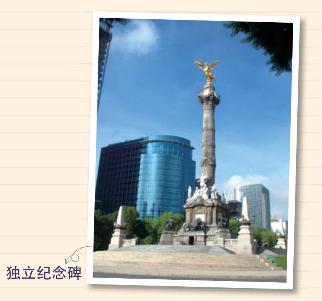 在改革大道的环岛里,为纪念墨西哥独立100周年而建。36米高。因碑顶装饰有金色的天使,也被称为“天使碑”。