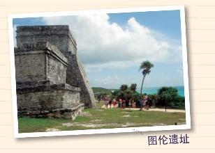 我们去了唯一的滨海玛雅遗址——图伦,看到城堡都面西背海。据说当年西班牙人起先对此不是讥讽,就是不解,这如何看海景呀?可住了几夜后,体验到海边狂风骤雨激烈拍打墙背时,城堡内却安然无恙,才由衷地佩服玛雅人的建筑智慧。