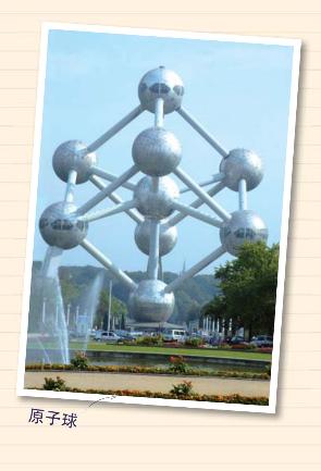 1958年,比利时举办布鲁塞尔世界博览会所设计的标志建筑。设计者希望通过这一巨大的建筑表达微小的原子概念,并显示人类和平利用原子的前景。正方体的大小相当于放大了1650亿倍的铁的正方体晶体。可乘电梯到达离地100米高的顶端圆球,观赏布鲁塞尔的风景。