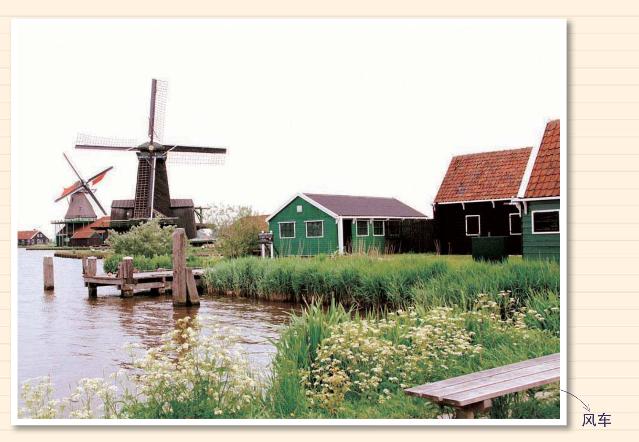 “风车村”里最显眼的是塔式风车房,这是荷兰古老的风车,也是民居。巨大风车建在塔楼上,住家不仅有楼层,还有宽大的露台,底层住屋开了窗,通风透气。这种塔式风车,外部造型稳健宽大,远近看起来都很漂亮,进去看看,功能齐全,生活也便利。荷兰有“风车王国”之称。荷兰临海,地势又低洼平坦,因此常年多风。700年前,荷兰人就利用这一自然条件,建造风车,进行排涝灌溉等生产活动。后来,荷兰人发明了各种各样的风车,用于磨面、锯木、排水、发电等。最多时有9000座各式风车在干活,现在,大部分风车已“退休”,仅存的1000座成了旅游风光,享受着世界历史文化遗产的殊荣。为纪念风车的功劳,荷兰将每年5月第二个星期六定为风车日,那一天,全国剩下的风车一齐转动。而且,每逢荷兰的盛大节日,风车上就围上花环,悬挂着国旗和硬纸板做的太阳星星。风车也成了游人到荷兰一游的最好背景,它们的模型也成了上佳的旅游纪念品。