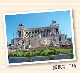 位于罗马市中心,长130米,宽75米,是5条大街的汇合点。威尼斯广场南面,有一座巍峨的白色大理石建筑,叫“祖国祭坛”,是意大利独立和统一的象征。祭坛上方刻有“祖国统一、人民自由”。有无名英雄墓,墓前两支火炬日夜燃烧,两旁有卫兵守护。每年意大利国庆,总统都要亲自主持向无名英雄献花圈。到意大利访问的各国首脑,通常都要到这里来献花致意。