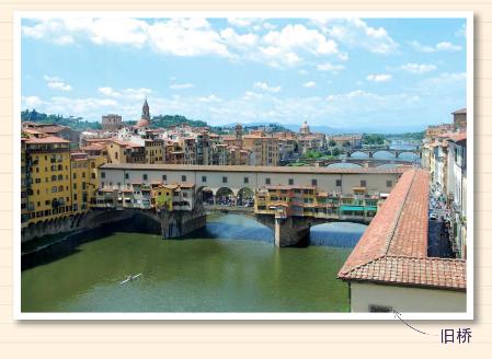 他说,有一座据说与但丁有关的古桥,值得一看。贯穿佛罗伦萨全城的阿尔诺河上,有多座优美的古桥,最为知名的就是“旧桥”,也叫维琪奥桥,它像一条空中走廊,把乌菲齐美术馆和比蒂宫连成一体。桥上有二层楼的建筑,两边有店。