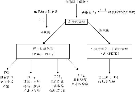 图14-1 花生四烯酸代谢过程及抗炎药作用机制