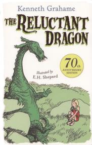 在写《柳林风声》之前,格雷厄姆还写过一本名叫《骑士降龙记》的书,只有薄薄的几十页,但故事却让人耳目一新。说的是一个牧羊人的儿子,酷爱读自然常识书和童话书,有一天,爸爸气喘吁吁地冲进屋来告诉他和妈妈,山上来了一条鼻孔喷火的龙。男孩上山一看,这根本就不是一条追逐骑士、吞吃少女的恶龙,而是一条爱作诗、不爱打架、在世界上没有一个敌人的好龙。可是,爱看打斗的村民们,却请来了降龙英雄骑士乔治。于是,没有一点英雄气概,“一辈子里没打过一次架,现在也不打算开这个头”的龙请男孩当自己的经纪人,从中斡旋,和骑士乔治联手为村民上演了武士屠龙的假戏……最后的结尾是,参加完庆功宴的龙突然困得不行,骑士乔治和男孩只好拉着他的手,在闪闪的星光下把他送上山。