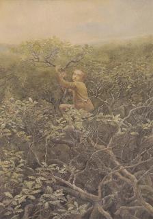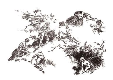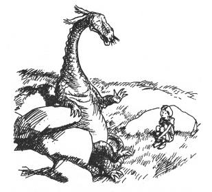 迪特利齐当然不会百分之百地照搬这个一百多年前的老故事,他赋予了它许多现代人的新观点。例如,当肯尼说他要一个人上山去看龙时,爸爸妈妈显得异常冷静,没有阻拦。爸爸说:“如果孩子认为他能对付龙,那我想我们应该让他去。他到底也不小了。”妈妈说:“好吧,不过先要洗好盘子,做好作业。”怎么样,是不是够可以的?要知道,这时肯尼的父母还不知道山上是一条“一生没杀过一样东西”的好龙,还以为是那种“会飞,吃美女、烧城堡”的恶龙,他们的独生子完全有可能一去不复返。