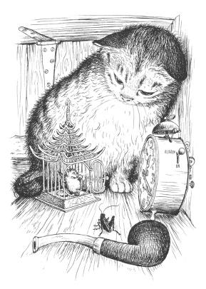 而到了第四卷里,老鼠德佩罗、耗子罗斯库洛和女仆米格里•索这三个人物的命运,都因为豌豆公主而纠缠到了一起。当德佩罗得知自己的心上人被罗斯库洛和米格里•索劫持到了地牢时,他拿一根缝衣针当剑,像天下最勇敢的骑士一样重返地牢。“读者,”让我们模仿书里的口吻这样来问,“读者,你一定会问,这样一只小老鼠能救出豌豆公主吗?”能,因为他爱她,因为他为了和她“从此以后永远幸福地生活在一起”。这是不是太荒唐了?是荒唐,但书里告诉我们:“爱情就是荒唐的。但爱情也是美妙的,而且是强有力的。德佩罗对豌豆公主的爱会证明这一切:爱情是强有力的、美妙的和荒唐的。”你看,他冲过来时多么像一个英雄救美的骑士啊——