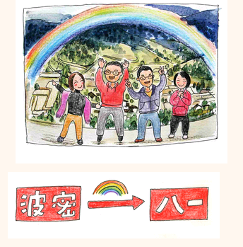 吃完中饭,天有些阴雨,艳遇男说:“看看我们有没有运气看到彩虹。我运气超好,在哪里都能看到彩虹,别人都叫我彩虹天使。”实在是自恋得叫人听不下去啊!可是,司机突然很淡定地说:“彩虹。”回过头去,就看到彩虹了。