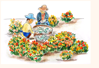 在喇嘛们居住的小院中,满地盛开的一簇簇雏菊,有着一种未经经营随意的美。有两个老人在花丛中洗瓶子,原来简单的劳动在西藏也这么美。
