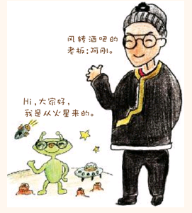 一个月后,无意间被拉去风转酒吧,才发现这位“外星人”原来是风转的老板,来自香港,名叫阿刚。虽然他怎么看都是一副弱不禁风的样子,却有着从泰国一路骑车到西藏的英勇事迹。回家后不久,发现阿刚出了一本书,叫《风转西藏》。