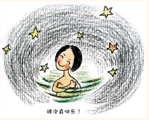 到底是凌晨,温泉里只有几个人。游泳衣已经湿了,我实在不想再穿上身,最主要是真的很想尝试一下裸泡的感觉。在深秋凌晨凛冽的风中,我哆哆嗦嗦脱完衣服赶快下水。进水的一瞬间,浑身每个毛孔都舒展开了,温暖的水流抚过身体。我舒舒服服地找了个黑暗的角落,坐在水里一块稍微凸起的石头上,天空中的每颗星星都像宝石一样闪亮,清晰得好像有人用丝绒布小心地擦过后安放在天上的。我长舒一口气,泡温泉果然就应该裸泡啊。