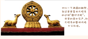 金碧辉煌的法轮和鹿是大昭寺的标志,在高原的阳光之下,闪烁着辉煌。记得第一天到大昭寺门口晒太阳,仰望这金顶,就问过傻问题:“为什么是鹿?”旁边的人很耐心地跟我讲解了这法轮与鹿的由来:相传释迦牟尼悟道成佛后,来到鹿野苑(在今天的印度瓦腊纳西以北10公里处)初转法轮,向他的5个随从讲法(这5人也成了世界上最早的佛教僧侣)。更加神话些的说法是:当时有两只神鹿也聆听了佛祖说法,深受教化,决意始终跟随佛祖。总之,这组雕塑是为了纪念佛祖的初次讲经,对佛教徒有很重大的意义。