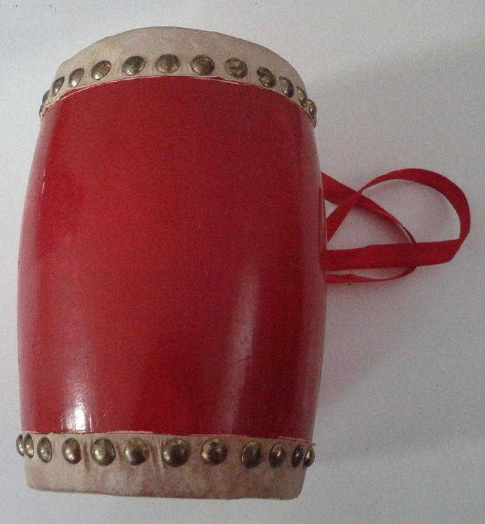 ⑤腰鼓。相传由南北朝外来鼓羯鼓演变而来。鼓身中间粗,两端细,蒙以牛皮或骡子皮 ,鼓身一侧置两个铁环 。有大小4种规格,发音清脆。常由舞者挂于腰侧,执双槌边击边舞 。用于民间秧歌或节庆、迎宾仪式中。