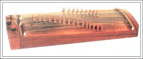 瑟,古老的汉族弹弦乐器,共有二十五根弦。古瑟形制大体相同,瑟体多用整木斫成,瑟面稍隆起,体中空,体下嵌底板。瑟面首端有一长岳山,尾端有三个短岳山。尾端装有四个系弦的枘。首尾岳山外侧各有相对应的弦孔。另有木质瑟柱,施于弦下。曾侯乙墓共出土瑟十二具,多用榉木或梓木斫成,全长约150至170、宽约40厘米。通体髹漆彩绘,色泽艳丽。