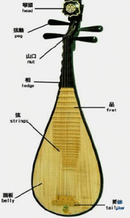 历史上的所谓琵琶,并不仅指具有梨形共鸣箱的曲项琵琶,而是多种弹拨乐器,其名“琵”、“琶”是根据演奏这些乐器的右手技法而来的。也就是说琵和琶原是两种弹奏手法的名称,琵是右手向前弹,琶是右手向后挑。所以说当时的“琵琶”形状类似,大小有别,像月琴,阮等,都可说是琵琶类乐器。琵琶是中国历史悠久的主要弹拨乐器。经历代演奏者的改进,至今形制已经趋于统一,成为六相二十四品的四弦琵琶。琵琶音域广,演奏技巧为民族器乐之首,表现力更是民乐中最为丰富的乐器。演奏时左手各指按弦于相应品位处,右手戴赛璐珞(或玳瑁)等材料制成的假指甲拨弦发音。