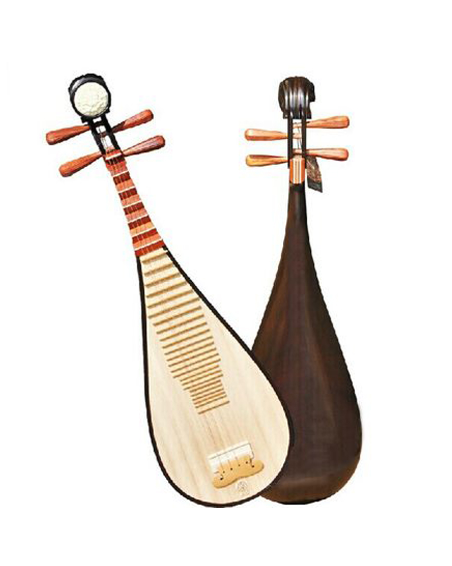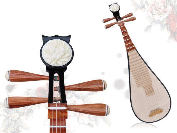 先看琵琶的用料。琵琶的材料,以背板的原料来说,分有最高档、高档、中档、次档四种。最高档是用紫檀做背料,音色最好,价格最贵,整块紫檀背料的琵琶很少,虽有,但是由二或三块紫檀料拼成的。高档的是用红木做背料,红木的品种很多,其中以老红木(颜色呈黑红色,也很难能买到)新红木(颜色呈淡红色,市场上能买到的红木琵琶大都是这一种)做背料,音色较好,价格稍贵。中档的是用花梨木、香红木做背料,音色尚好,价格适中。次档的用白木(如(窿)木等)做背料,音色较差,价格最便宜。背板整料最好,象贝最贵。