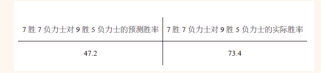 图1–2 7胜7负力士对9胜5负力士的预测胜率及实际胜率