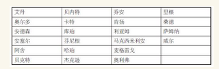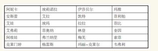 表6–24 20世纪90年代最常用的“上层”白人女名