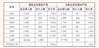 塞梅尔维斯认定,这也是不太可能的。对两种产房中出生的婴儿死亡率进行分析后,他还发现了这样的事实:男医生负责的产房的婴儿死亡率比女接生员负责的产房高很多,分别为9.9%和3.9%。男婴和女婴的死亡率并没有什么不同。正如塞梅尔维斯所观察到的,新生婴儿“因为男医生接生而死亡”是不太可能的。因此,认为男性在场是那些产妇死亡的原因的推断是站不住脚的。