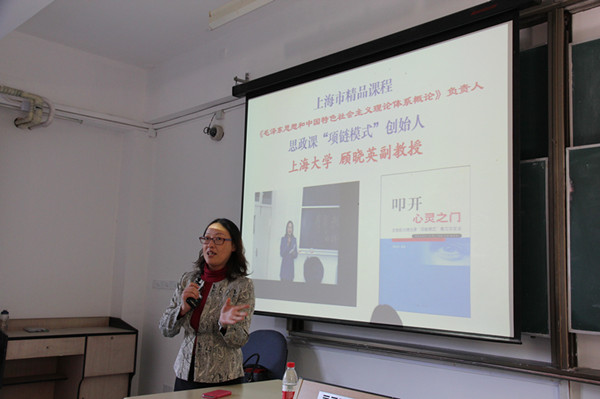 日前,上海市精品课程《毛泽东思想和中国特色社会主义理论体系概论》(简称《概论》)负责人、“项链模式”教学法创始人,上海大学顾晓英老师来到致远学院学生“思政课”《概论》课堂,现身演示“项链模式”,深刻讲解习近平外交战略思想基本内容和重大意义,使同学们感受深切。