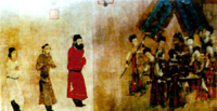 中坐者为唐太宗左二为吐蕃请婚使臣禄东赞,唐代著名画家阎立本绘
