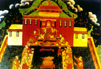 小王子赤松德赞(藏文史籍说是金城公主之子)宴前认舅图(罗布林卡壁画)