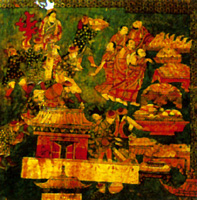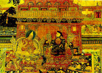 描绘清帝对五世达赖及其随行人员的贡赏图(布达拉宫壁画)