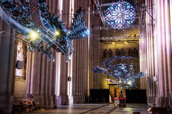 有趣的是,中西方文化的碰撞不仅仅发生在作品里,居然也在作品完成期间重演。作品主体采用总重量达60吨的中国石头,呈现在V&A博物馆的中庭花园水池周围。国外的美术馆制度成熟,既要保护建筑物,又要保证观众的安全,这些严苛的条件下,V&A美术馆方面更遵循着英国人守旧的态度,提出了很多保护建筑物的要求,使得作品完成出现了更大的难度并耗费更长的时间,最终不得不放弃了在装置中使用真实植物和鱼群等的想法。正式开展的第一天,徐冰及其团队仍然在继续完善着作品,负责保护现场作品安全的保安不希望任何人触碰作品,与徐冰团队发生不少矛盾。不过徐冰乐观地认为,正因为艺术能超越文化的固有模式,以及现有的知识范围的限制,所以才更值得去创造。