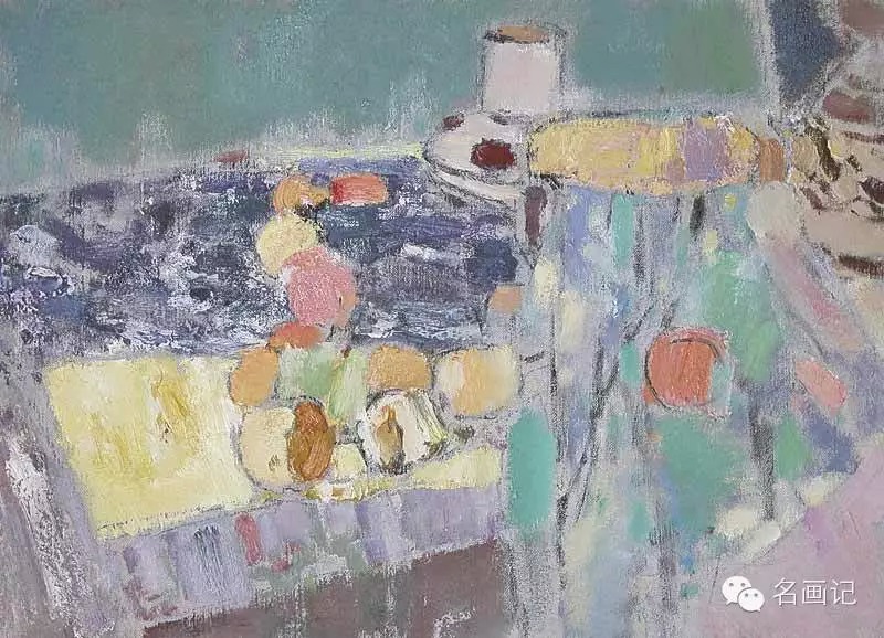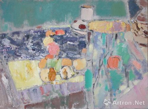 毛岱宗-有蓝印花布的静物-布面油画-1999