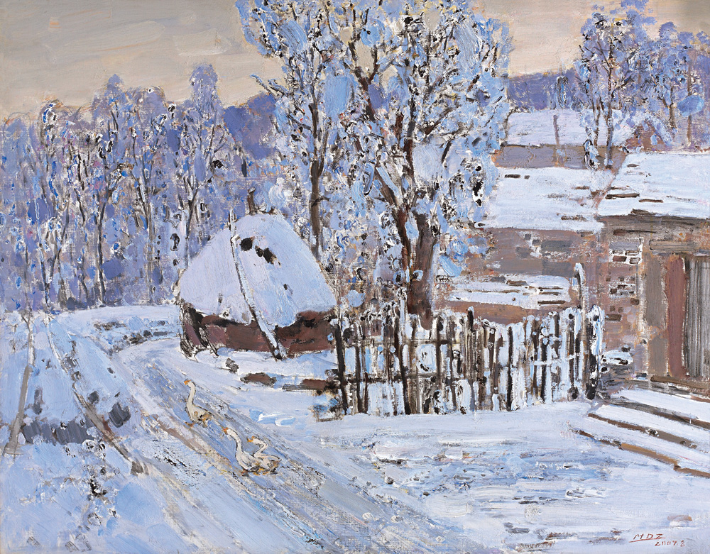 毛岱宗-银色世界-小溪-45×60-布面油画-1999