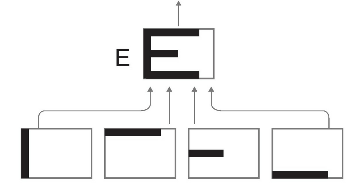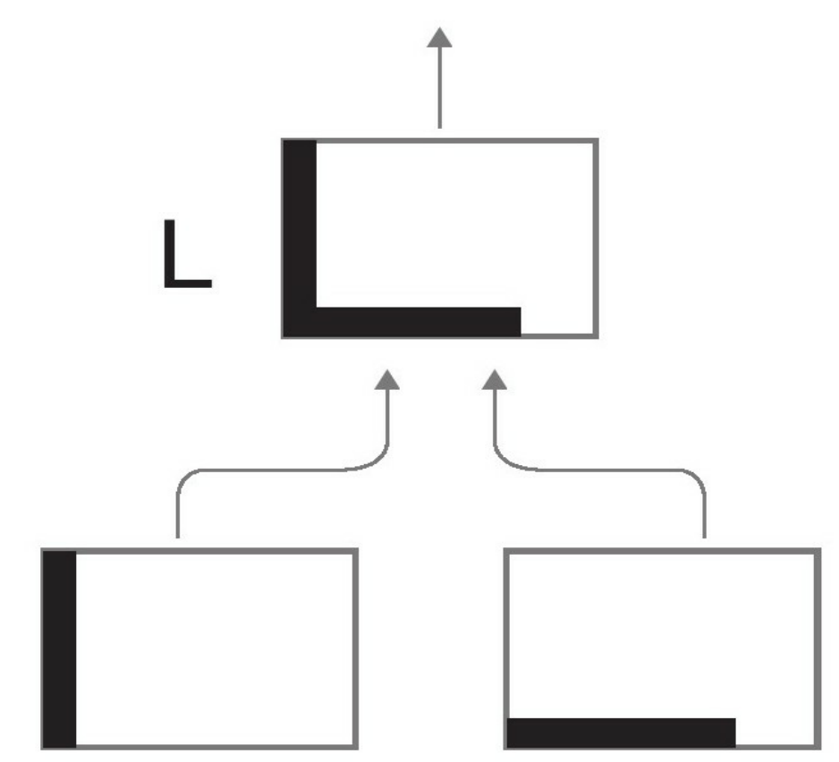 以上模式都是相邻更高层级的模式的组成部分,相邻更高层级也就是一种被称为印刷体字母的范畴(不过大脑新皮质中没有这种正式的分类,而实际上并不存在正式的分类)。