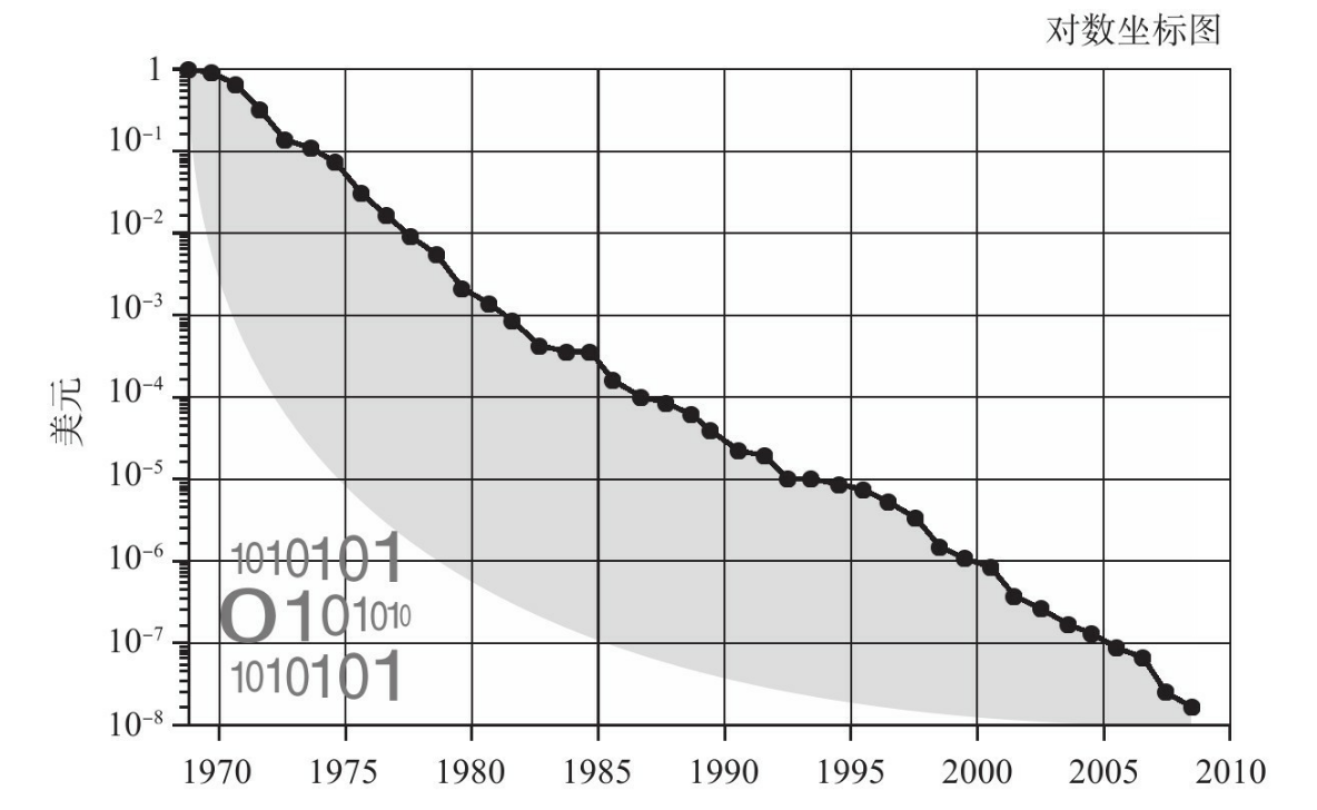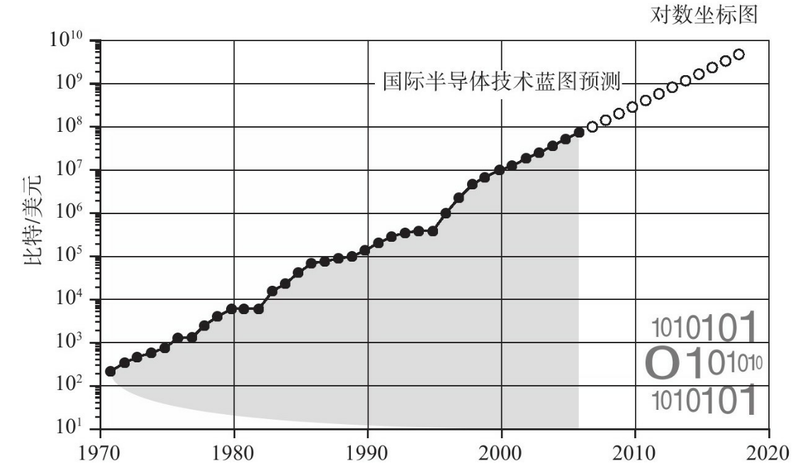 图10-9随机存储存储器(RAM)芯片每1美元比特数变化[199]