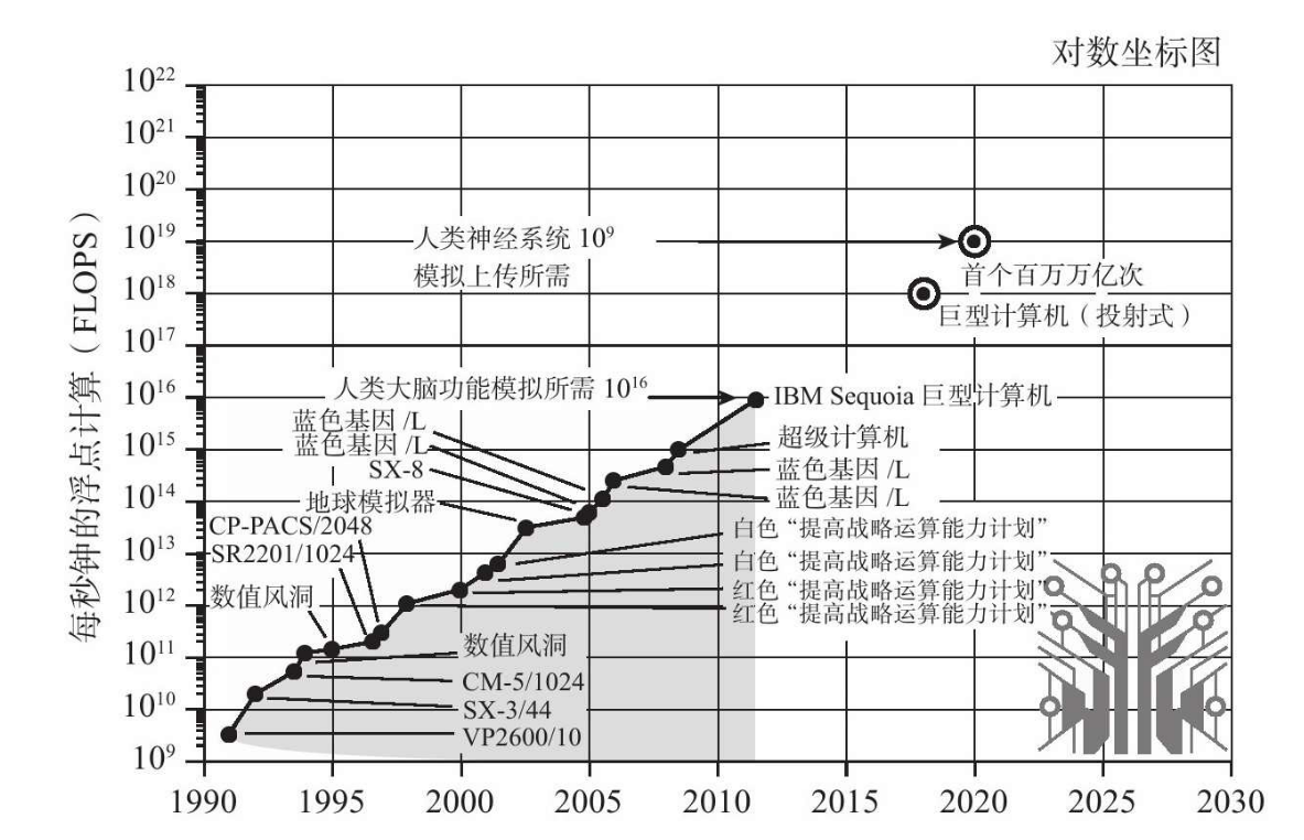 图10-6不同超级计算机每秒浮点计算量的增长[196]