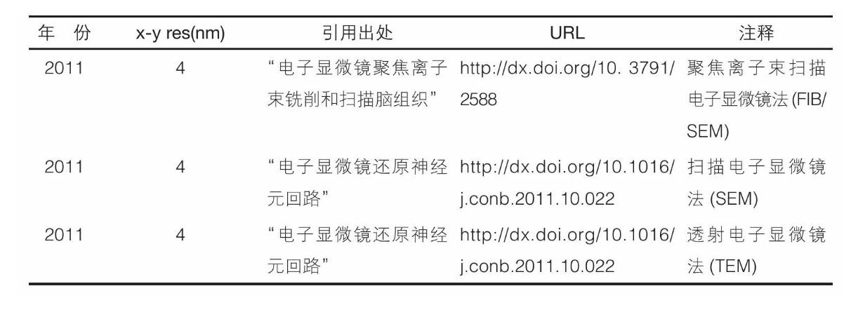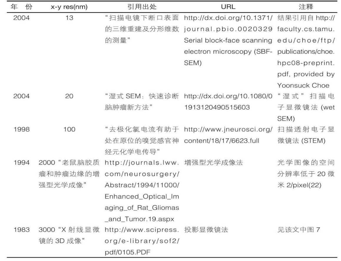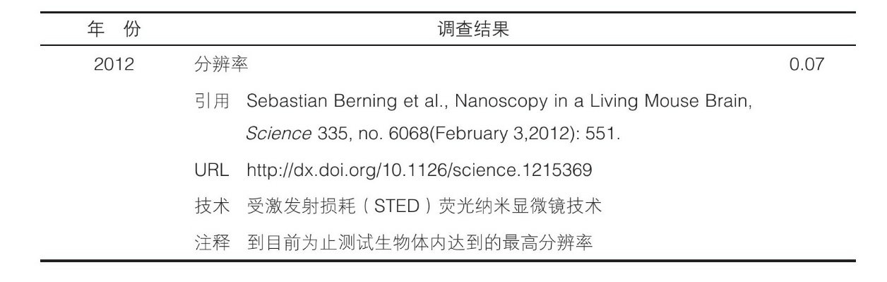 [207]18.以纳米(nm)为单位的破坏性脑成像技术的空间分辨率,1983—2011年: