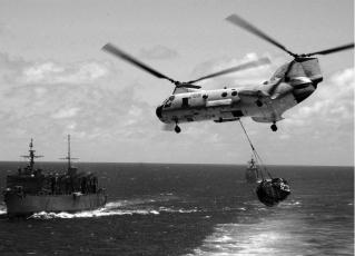 CH-46直升机由美国波音公司制造。在整个服役期内, CH-46直升机问题多多,命运时起时落。由于事故频繁,加上又不能弃之不用,所以美军只得经常进行检查,而且海军陆战队下令每架CH-46每次只能载12人而不是原来规定的25人,所以每小时飞行的代价比以前上升了75%。