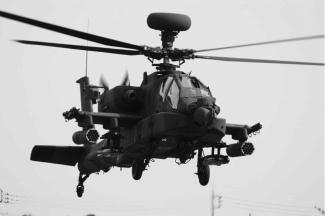 AH-64“阿帕奇”直升机是美国最先进的具有全天候昼夜作战能力的武装直升机,由美国原休斯直升机公司研制,编号休斯77型。AH-64直升机于1975年开始研制,主要用于反坦克作战。与其他直升机相比,“阿帕奇”的突出特点是:一是火力强,它以反坦克导弹为主要武器,另外还有机炮和火箭等;二是装甲防护和弹伤容限及抗坠性能好;三是飞行速度快;四是作战半径大,可达200千米左右;五是机载电子及火控设备齐全,具有较高的全天候作战能力和较完善的火控、通信、导航及夜视系统;六是具有“一机多用”能力。