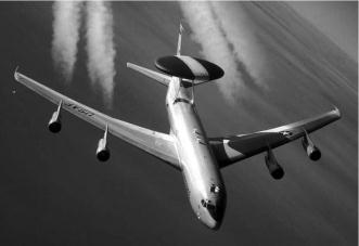 E-3是波音公司根据美国空军“空中警戒和控制系统”计划研制的全天候远程空中预警和指挥飞机,有下视能力,能在各种地形上空执行空中预警任务。从1963年提出要求,经过几年研制,1975年以波音707客机为基础改制的原型机首次试飞,1977年第一架生产型交付使用。