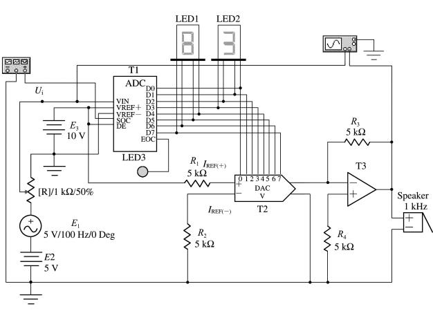 d. 请完成电路设计,并观察输出结果和各点波形。